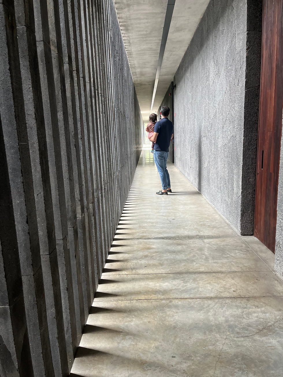 Había pasillos largos, abiertos, llenos de aire. Nos topamos con una clase de ecstatic dance donde Lua se incorporó tiernamente por unos minutos. También nos invitaron a pasar a una clase de cerámica que estaba en uno de los salones del edificio. Las niñas estaban felices, pasando por todos los corredores semi abiertos, rodeados de plantas.